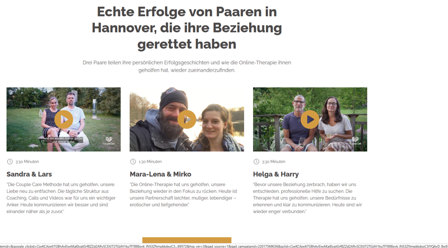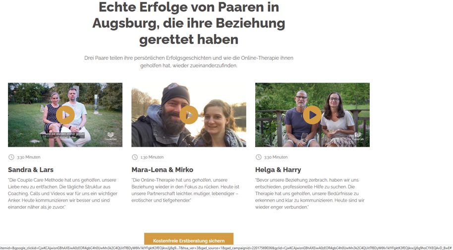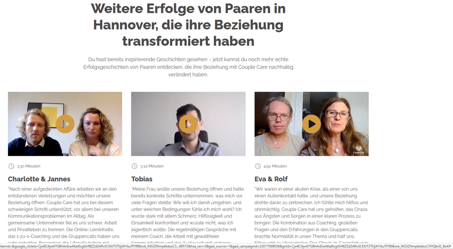 Bei Anbieter:innen aus dem angrenzenden deutschsprachigen Ausland, die auch in Deutschland aktiv sind und u. a. mit Slogans werben, die Paarberatung, Paarcoaching oder Paartherapie als nicht mehr zeitgemäß oder ineffektiv(er) abwerten, rutscht man auch noch unmerklich in eine problematische Weltanschauung hinein, die sich nur Leuten als solche erschließt, die sich auskennen.